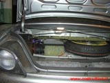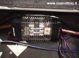 Mentre tutto ciò che stava nel bagagliaio viene levato per lasciare il posto prima ad un amplificatore INFINITY DPA275 in classe D che continua a pilotare il sistema anteriore a due vie.