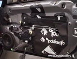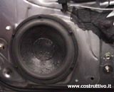 Montaggio in portiera del woofer Technology LS180 NEO su distanziale costituito da un sandwich di legno e piombo di considerevole spessore dopo aver trattato pesantemente l'interno della portiera con Noise-Killer e chiudendo ogni sfogo con fogli smorzanti della Rockford fosgate.